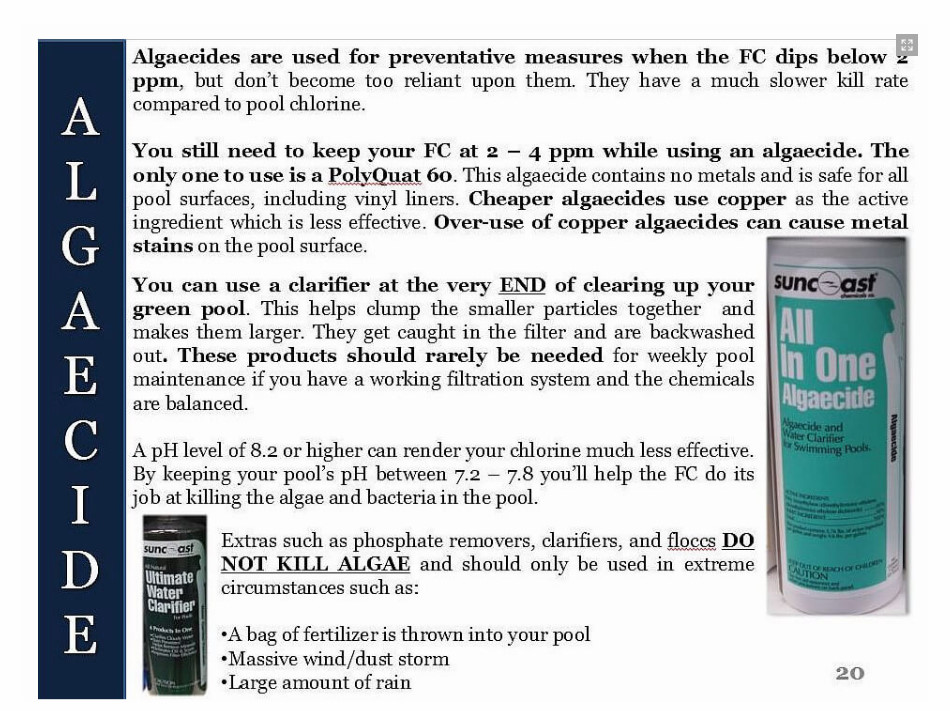 How To Clear Up A Green Pool eBook cuts through the confusion with this easy to understand guide to pool water maintenance. Available for computer and mobile devices for $12. Click on the "Instant Download" button or HERE and get started today and SAVE hundreds of dollars over the Summer!!